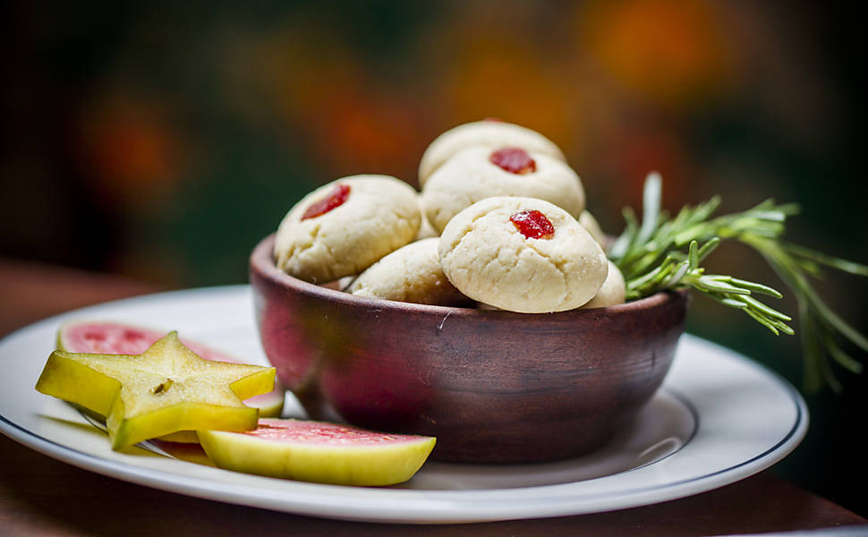 Fazer bolinhas de 10 g, colocar os quadradinhos de goiabada no meio e pressionar. Assar, em forno pré-aquecido, por mais 12 minutos, até dourar ligeiramente a parte inferior. Retirar do forno e deixar esfriar antes de servir.