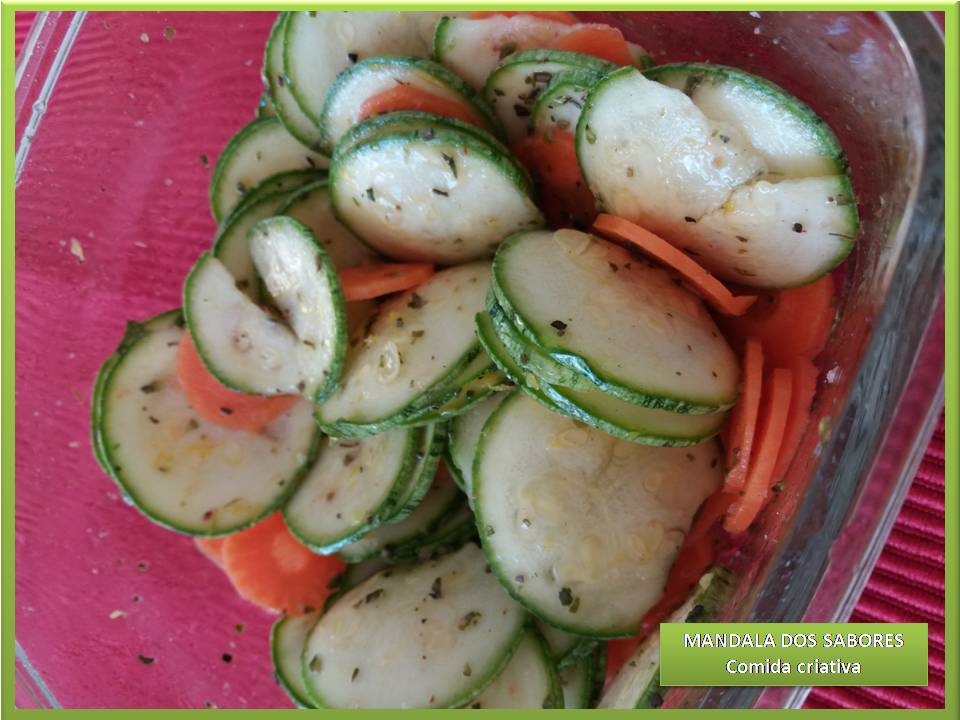 Corte os legumes. Deixe por 2 minutos em água morna. Escorre bem. Coloque numa tigela, em seguida acrescente os temperos e o azeite. Mexa bem. Leve a geladeira. Deixe marinar pelos menos 8 horas. Fica macio e crocante. Pode fazer no dia anterior também. Sirva como entrada, salada, recheio de sanduíche. Humm….tudo de gostoso!