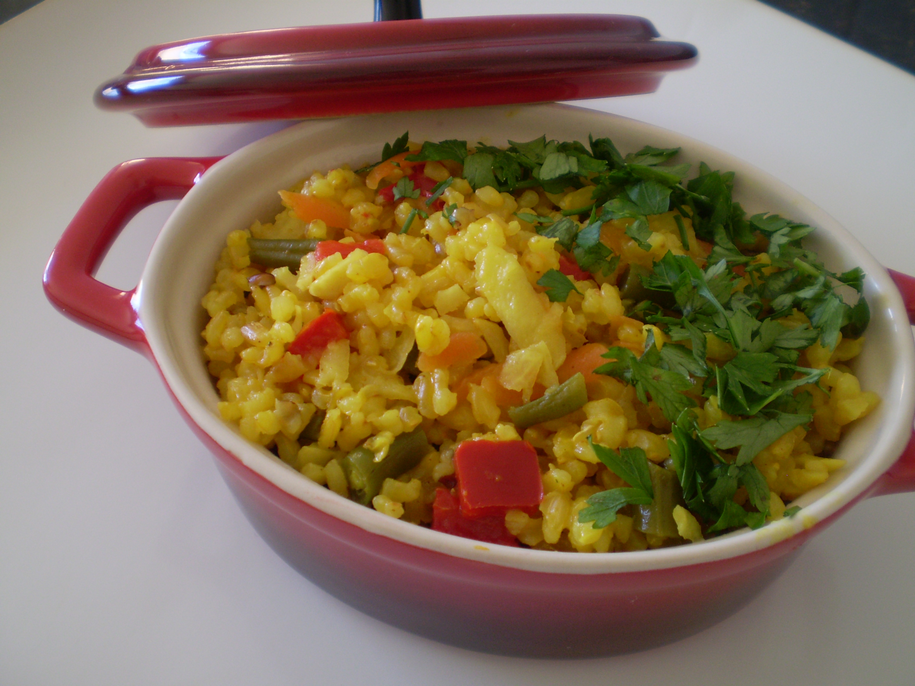 OBS.: O Arroz integral demora mais pra cozinhar. Os legumes podem ser de sua preferência desde que tenha várias cores (verde, vermelho, amarelo/laranja, branco e roxo). Assim o prato será nutritivo e completo para alimentar o organismo. Sempre faço arroz com açafrão. O açafrão é um antibiótico natural que ajuda na prevenção de infecções agudas e reumatoide.